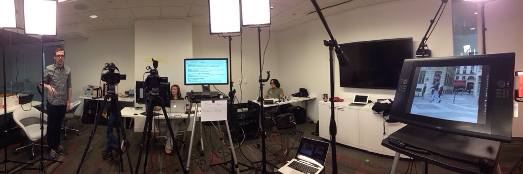 In the rest of this post, I want to give you a flavor of how filming proceeds and what it entails. Every morning I go directly to our set where I meet Emily, Marlon, Ryan and Andy. We tape until a unit is complete, which takes us at least the morning and often into the early afternoon. Lectures consist of short segments, 4-10 min, ideally about 5-6 min, in length. Our filming follows the chronological order of the MOOC.