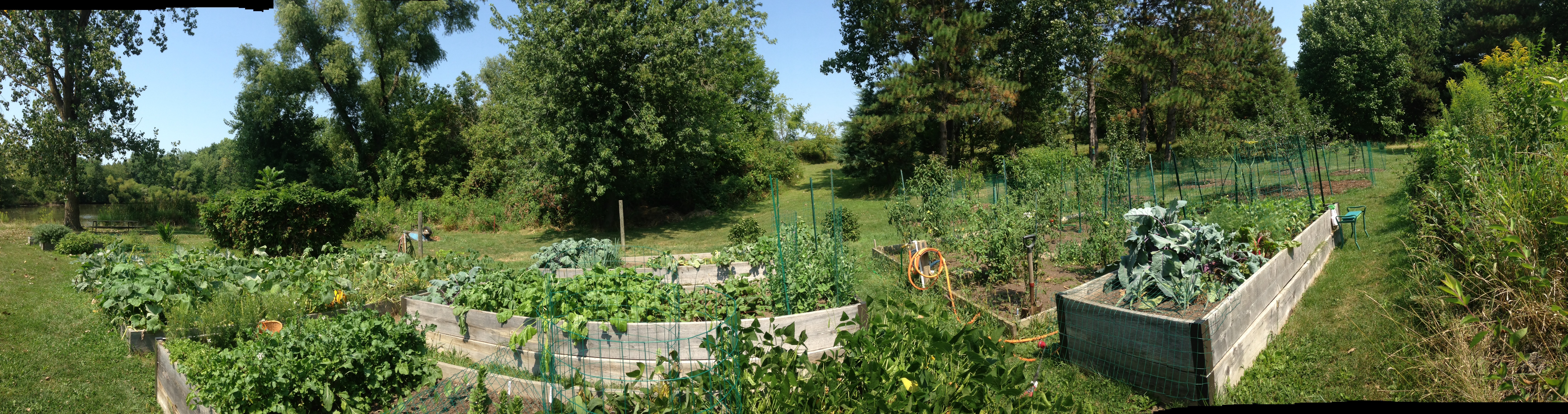 Finally, here is a weird panoramic shot of last year’s biomass. Bad tomato-year is evident on the back right. Everything else did well.