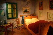 This is a photograph of a reconstruction of Van Gogh’s bedroom that is located in Arles, France. Photo credit: Novel Travelist.